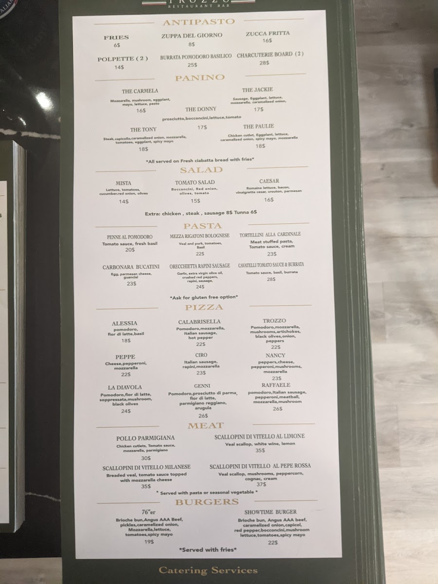 Welcome to Trattoria Trozzo Restaurant Bar, a hidden gem tucked away in the vibrant streets of Montreal. Renowned for its authentic Italian cuisine, this eatery is a testament to culinary passion. Customers rave about the homemade pasta and rich sauces that evoke memories of Italy. The Tiramisu is a must-try, described as "heavenly" and truly divine.